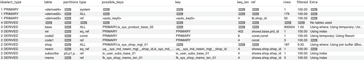 동시에 조회 시 전체 상품 목록이 (약 백만개) 담긴 테이블을 서브 쿼리로 사용하고 있고 WHERE 조건절에 상품몰의 고유 ID 로 전체 상품 목록 테이블에서 필터링하고 있습니다.